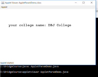 <applet code=AppletParamDemo.class width=550 height=300 >